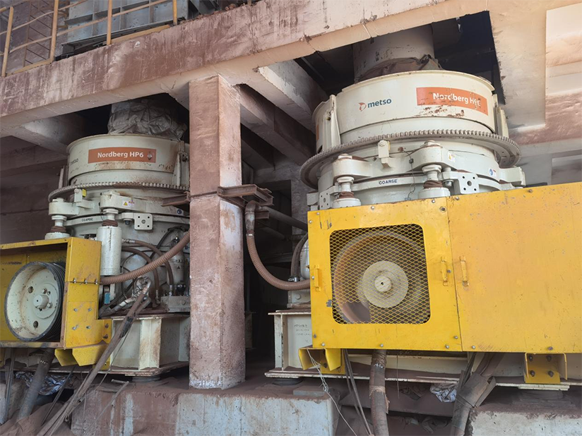 1、現(xiàn)場(chǎng)兩臺(tái)HP6設(shè)備無法滿腔給料,且入料粒度過大。