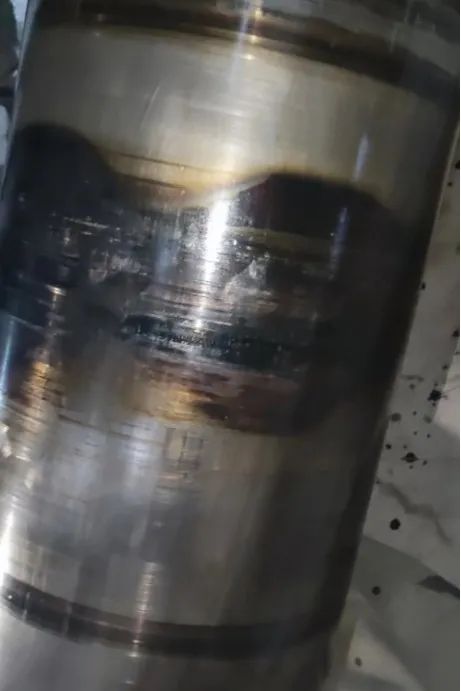 當破碎腔內(nèi)進入鐵件時,動定錐相互擠壓、活塞缸液壓瞬時升高之后降低,主軸在下降的同時發(fā)生傾斜,導致止推三件套磨損異常。并且主軸傾斜時,主軸與偏心銅套之間的油膜會遭到破壞,造成偏心銅套的損傷。從回油濾網(wǎng)上銅屑的異常增多,可以很好的體現(xiàn)設(shè)備的磨損情況。嚴重時甚至會造成偏心銅套、機架銅套等備件的變形失效,而引發(fā)的設(shè)備突發(fā)性停機故障。